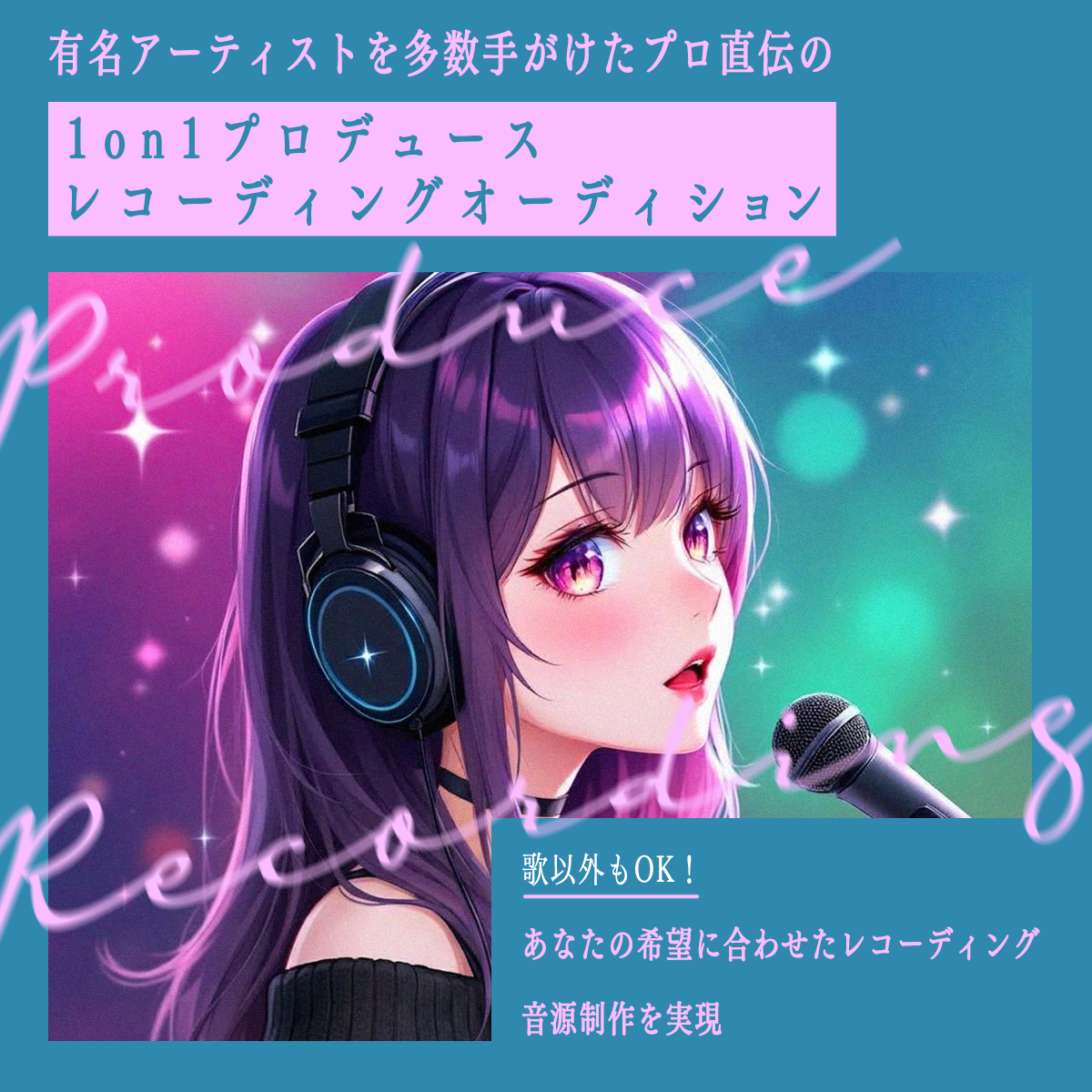 有名アーティストを多数手がけたプロ直伝の 1on1プロデュースレコーディングオーディション ~あなたの希望に合わせたレコーディング・音源制作を実現~