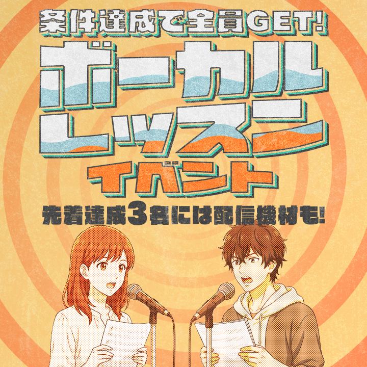 先着達成3名には配信機材も!条件達成で全員GET!ボーカルレッスンイベント!